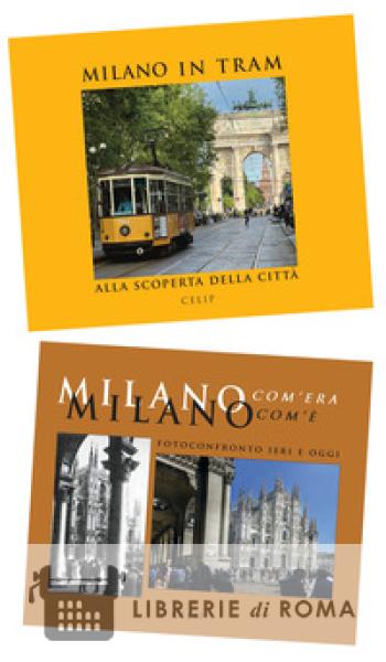 Milano di ieri e di oggi in due volumi, confezionati insieme, che raccontano la città a più voci e con preziose sequenze di immagini. "Milano in tram" ci porta alla scoperta della città in compagnia di oltre trenta personaggi: è un viaggio ricco di storia, emozioni e ricordi, con molte passeggiate milanesi a bordo del mitico Milano 1928 e dei moderni tram. Più di 300 immagini illustrano questo volume, realizzato in collaborazione con Atm. "Milano com'era com'è" ci fa rivedere la città di una volta e quella di oggi in sorprendenti fotoconfronti, commentati da molti studiosi. Il volume presenta immagini d'epoca del Civico Archivio Fotografico del Castello Sforzesco, affiancate a scatti attuali realizzati appositamente.